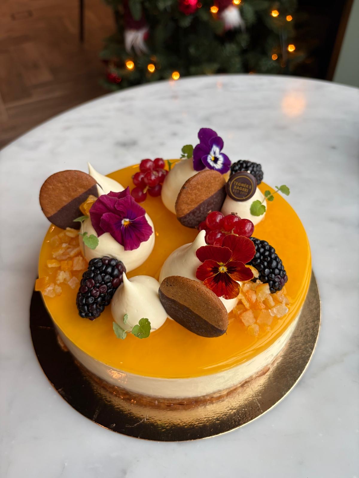 Mandarincoulis,digestive/pepparkaksbotten, färskost, vitchokladmousse